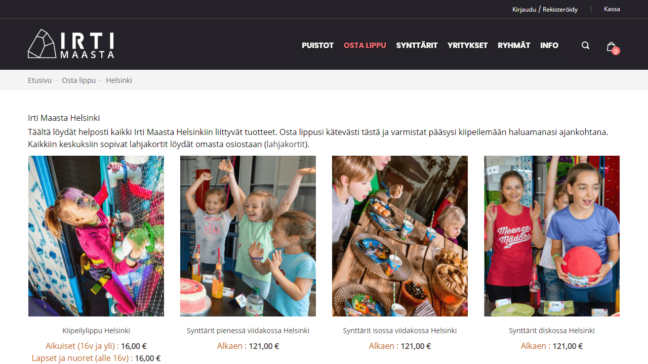 Irti Maasta wanted to create an amusement park online store with a reservation system that could withstand a large number of queries. Irti Maasta online store allows you to create various product combinations with different rooms/attractions and saves a lot of time when booking. Currently, they have amusement parks in Turku, Tampere, Pori and Helsinki, but the Magento platform allows them to scale up and expand into new markets.